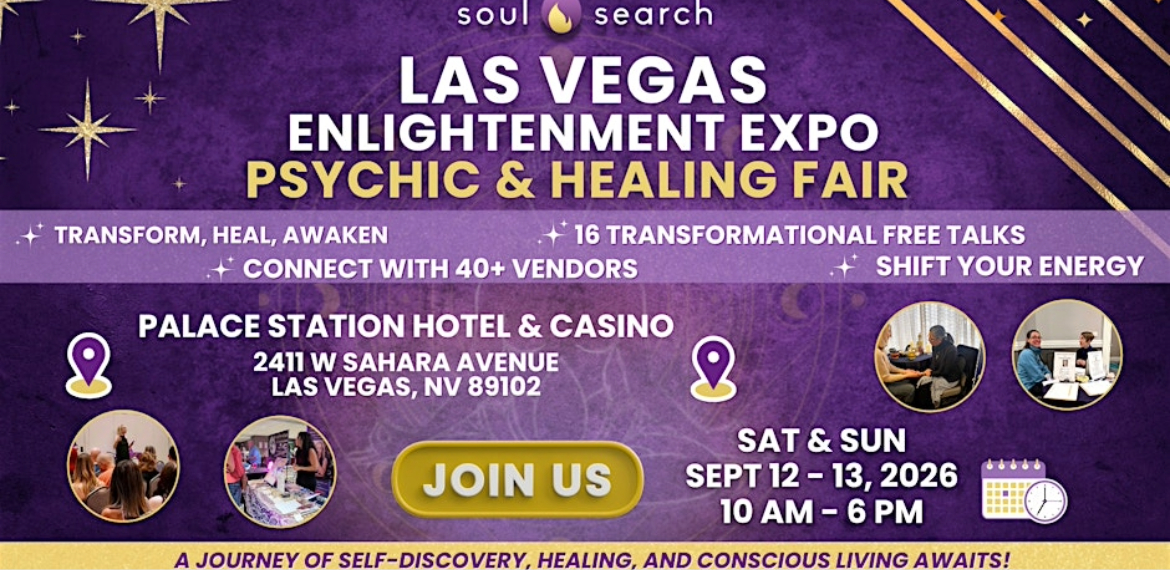 The SoulSearch Enlightenment Expo is coming to Las Vegas for the very first time—bringing two unforgettable days of healing, transformation, and high-vibe magic to the heart of the city!