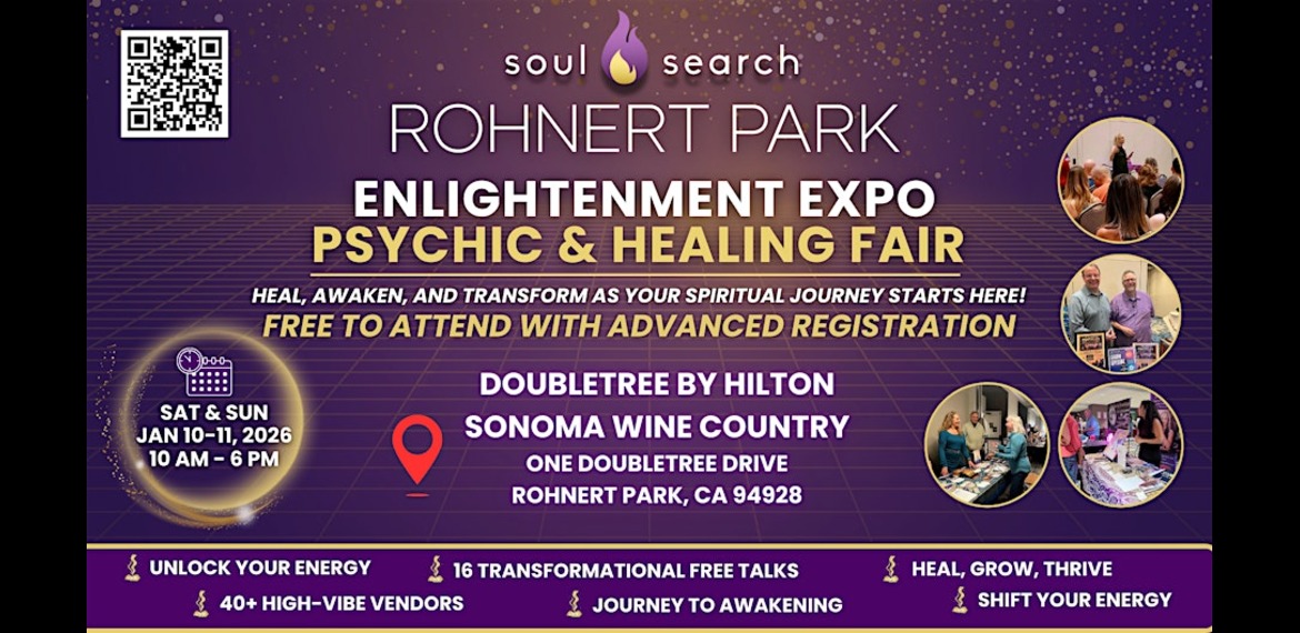 Get ready for an incredible experience at the Rohnert Park/Sonoma SoulSearch Enlightenment Expo, where you'll explore healing & transformation!
